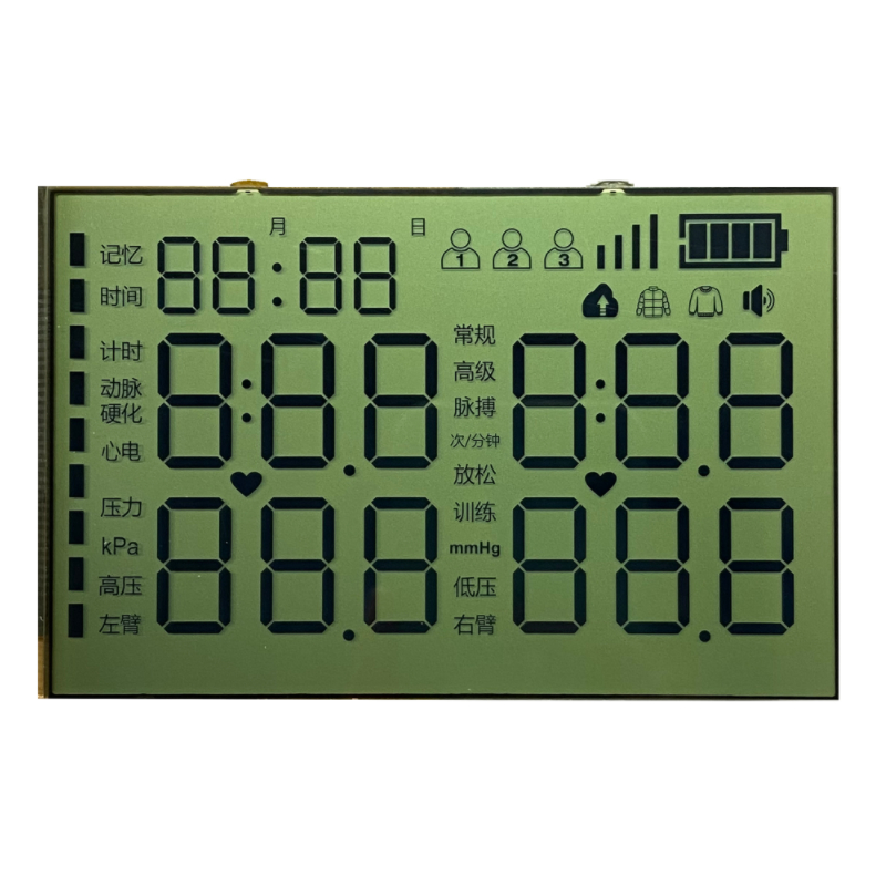 HTN LCD (High Twisted Nematic LCD) is widely used in medical equipment thanks to its high contrast, wide viewing angle, and low power consumption. These displays are commonly applied in thermometers, blood pressure monitors, glucose meters, and portable diagnostic devices, where clear and stable data visualization is crucial. Compared with standard TN LCDs, HTN LCD provides better readability under various lighting conditions, making it ideal for bedside monitoring and handheld medical instruments. Its reliability, durability, and cost-effectiveness also make it a preferred choice for long-term use in healthcare applications.
